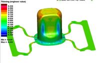 Finite element simulation (PAM-STAMP) of all types of stamping, cutting or drawing operations. Complete processes with all the operations, optimization, spring-back, compensation, calculation of sheet thinning, breaks, critical points. Design alternatives.